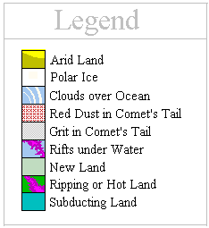 Where the Earth, dragged by its core, is shifting into a new, albeit temporary, alignment with the giant comet, its waters resist greatly. Thus the waters slosh over the nearby land, in the direction opposite to the shift. This is lessened by a tendency of the waters directly under the giant comet to rise up to meet the comet. The waters heap up, in what appear to be giant waves. This tends to lessen the sloshing over a shoreline on the comet side, but has no effect on the water's movement on the dark side of the Earth.